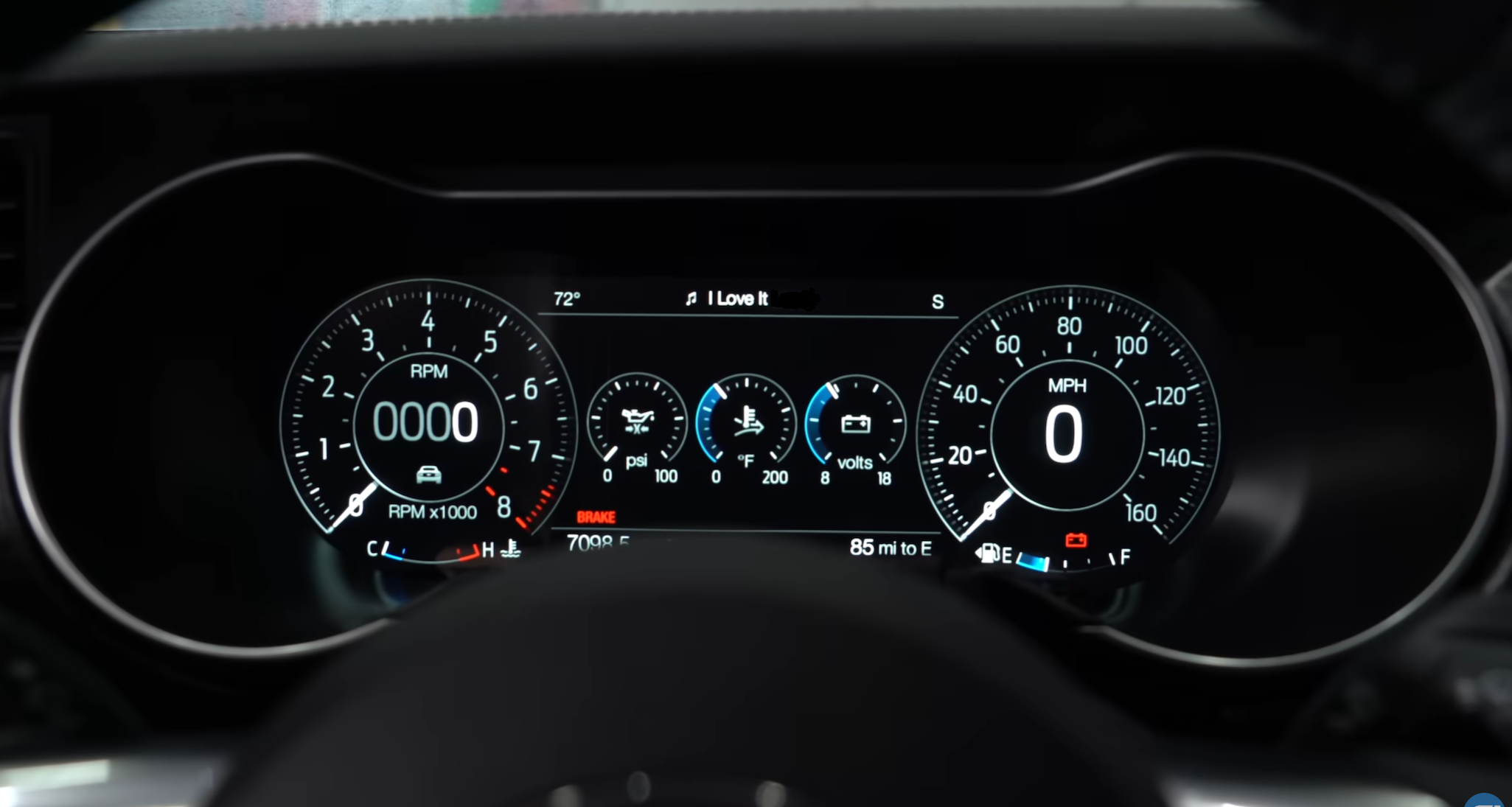 2019 Mustang GT (S550 Digital Cluster) - A digital reinterpretation of classic performance dials. Strong contrast and tachometer emphasis maintain Mustang’s bold, driver-focused character in a modern interface.