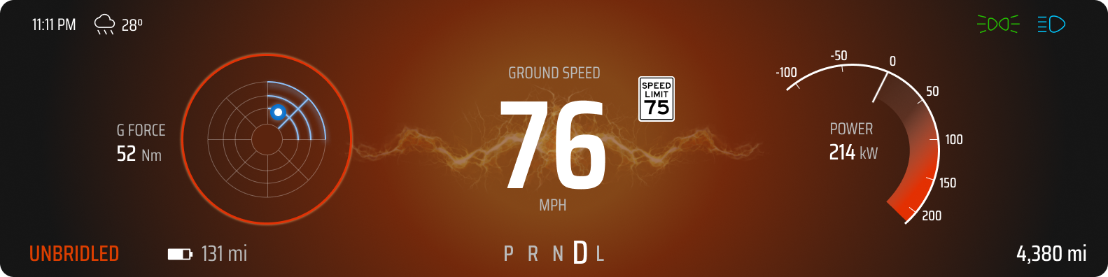 Due to the adventurous nature of the users, it was key to emphasize the adventure aspects that the Momentum offers such as the “Adventure Mode” driving mode on the driver’s display