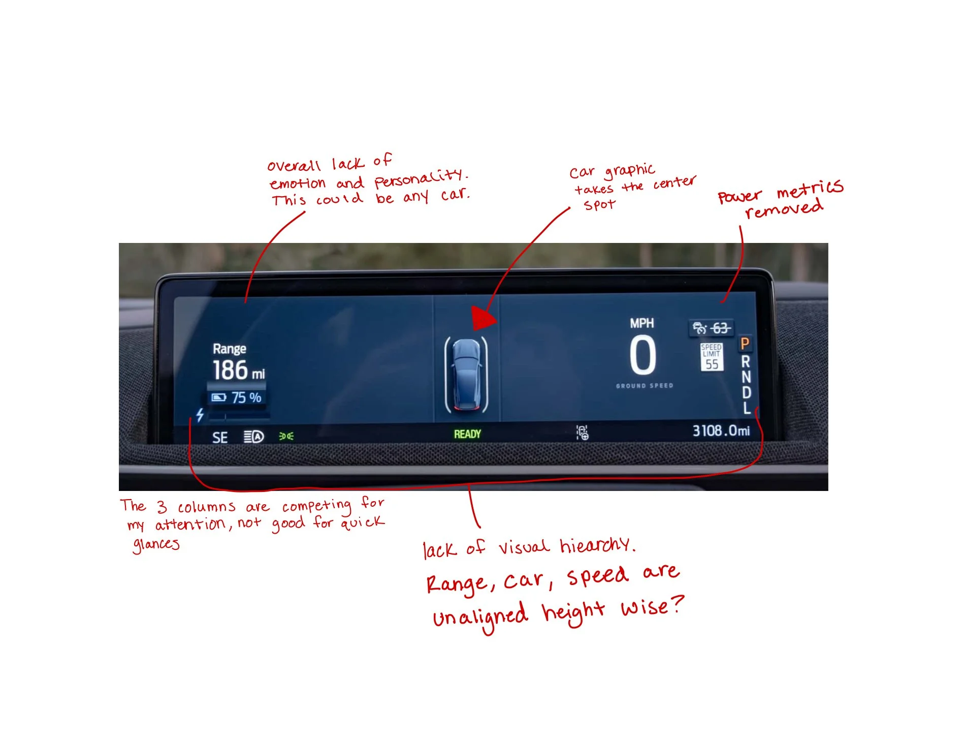 “My speedometer showed the speed right in the center of the screen. Now I have a car in the center and my speed is pushed all the way to the right where my steering wheel blocks it… it’s a total waste of space.”