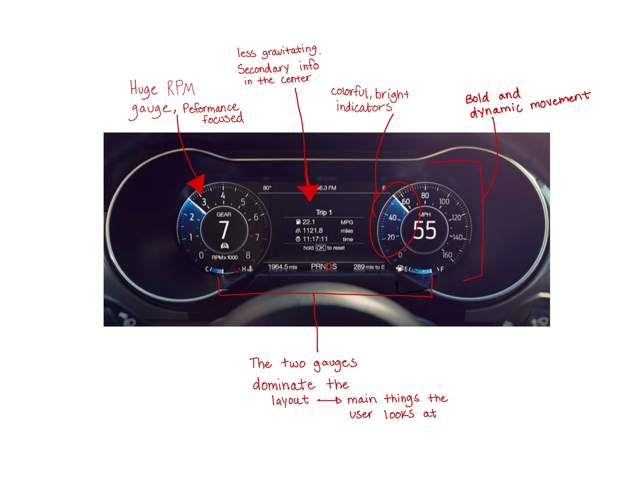 These insights clarify the design opportunity: restore visual hierarchy, differentiate driving states, and reintroduce performance emphasis so the digital experience feels unmistakably Mustang.